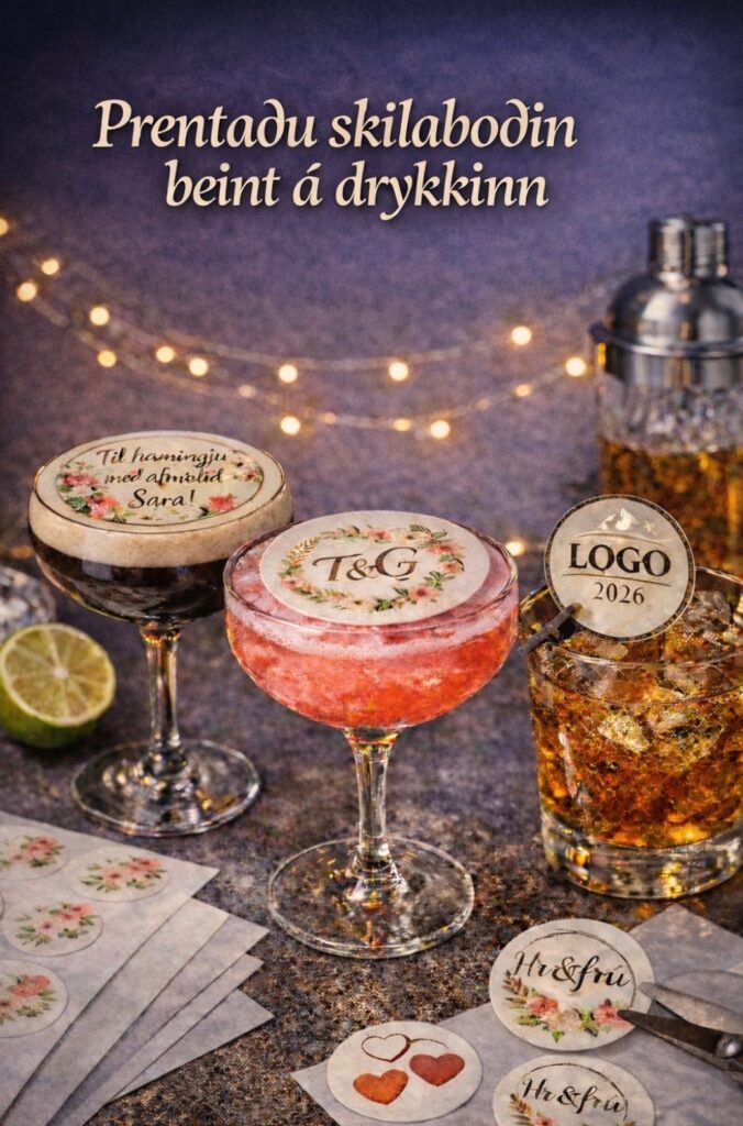 Við bjóðum uppá drykkjartoppa sem eru að ryðja sér til rúms á viðburðum um allan heim. Drykkjartopparnir eru þunnar, ætanlegar skífur sem liggja ofan á drykkjum og gera hvern kokteil, mocktail eða glas að hluta af upplifuninni.